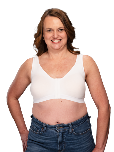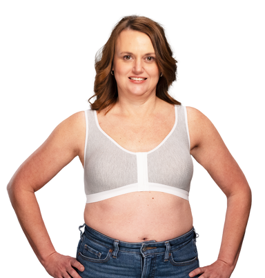 4060 Riley Style: Front Closure Bra, Seamless Cotton Stretch Soft Cup, Post-Surgery/Leisure Wear Colors: White, Heather Grey Sizing: 34 A/B to 44 A...